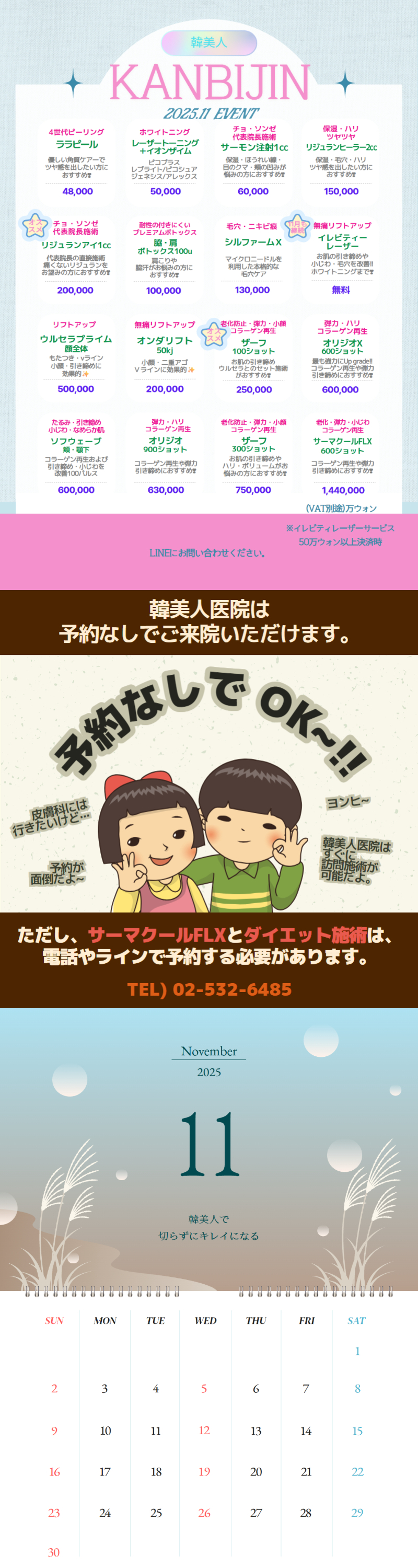 -> 当日施術せずに相談のみの場合、相談費が発生します。(3万ウォン)