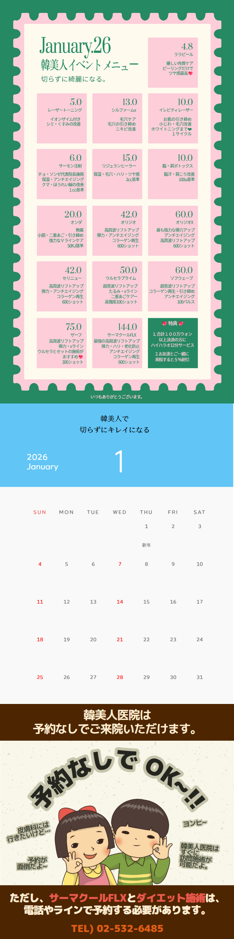 一般診断書 2万ウォン / 診療確認書 3千ウォン 相談費 3万ウォン -> 当日施術せずに相談のみの場合、相談費が発生します。(3万ウォン)